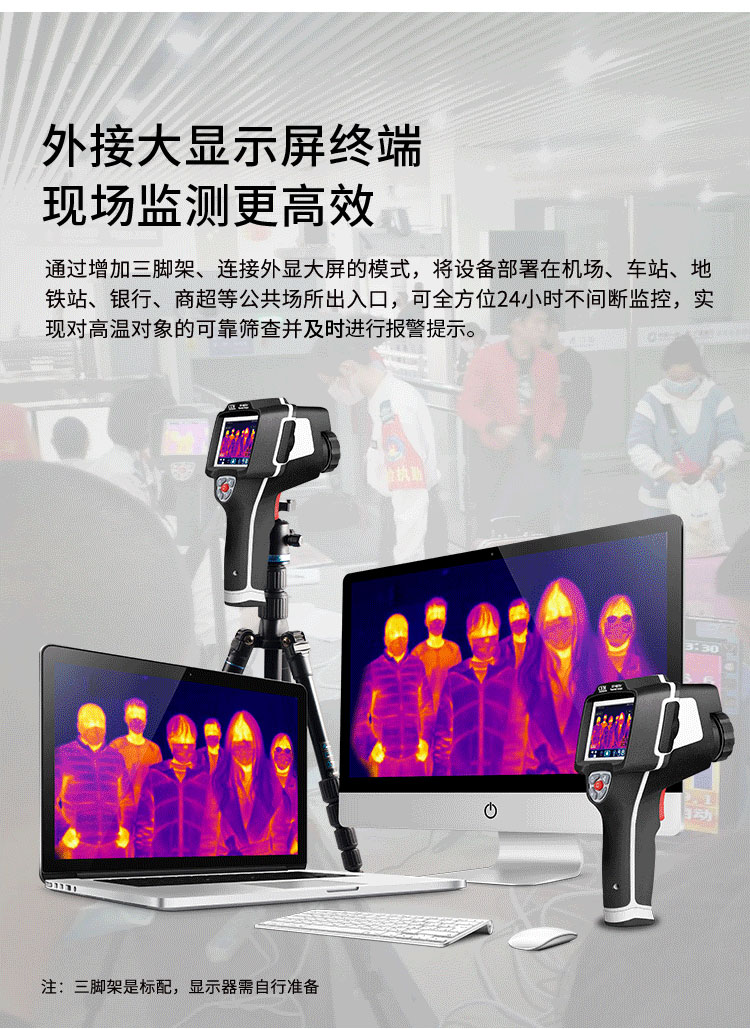 分辨率:160*120、圖像幀頻:50HZ、篩查測溫范圍:32-42℃、AV輸出大屏全屏顯示
