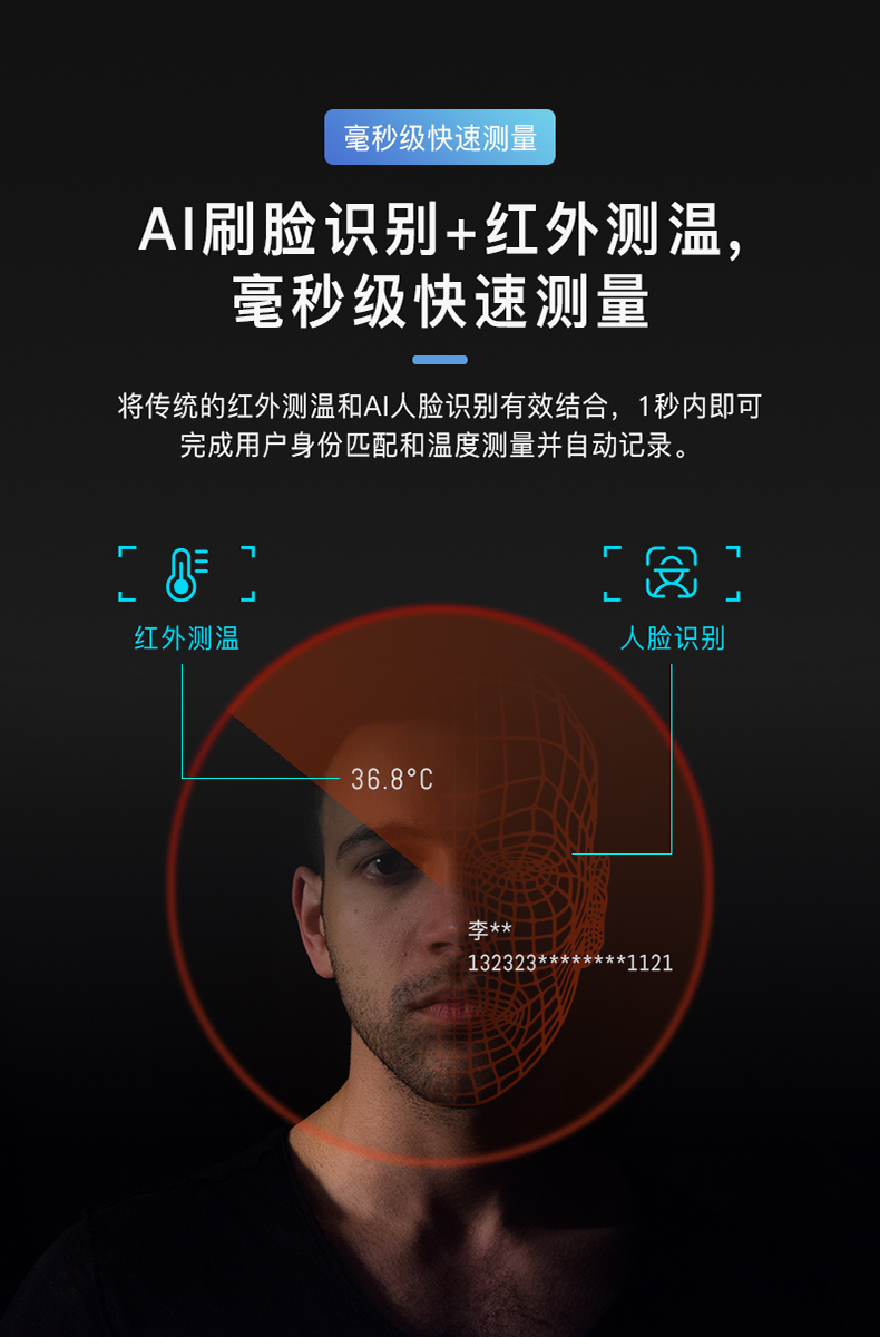 身份證/國(guó)康碼讀取智能核驗(yàn)終端 ·AI人臉識(shí)別測(cè)溫 ·插電聯(lián)網(wǎng)即用·遠(yuǎn)距離高精度測(cè)溫·身份證比對(duì) ·可組網(wǎng)和深度定制