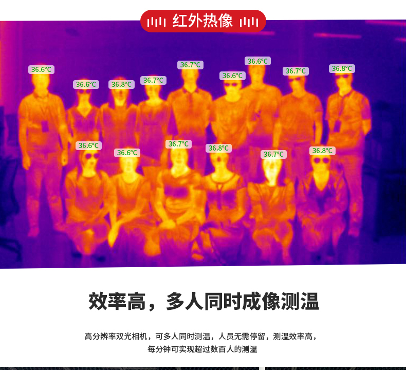 ·標(biāo)配黑體,實(shí)時(shí)溫度校正,測溫精度士0.3°℃·智能快速識別測溫,效率可達(dá)900人/分鐘·AI人臉識別,排除異常熱源干擾,誤報(bào)率更低20年非接觸紅外測溫研發(fā)經(jīng)驗(yàn),測溫更優(yōu)更準(zhǔn)確
