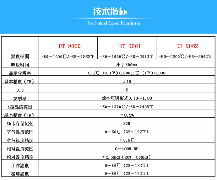 雙激光、溫度-50-2200、距離比50:1、可調(diào)0.10~1.0